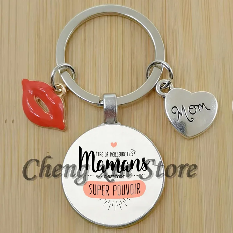 The Best Mother in the World, French Printed Holiday Birthday Gift Keychain for Mom